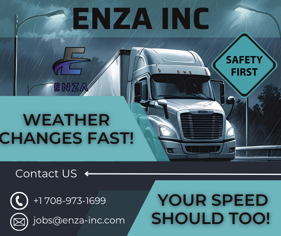 At ENZA INC, safety is always our top priority. Out on the road, conditions can shift in an instant—from sunshine to heavy rain, strong winds, or even ice. Smart drivers know that adapting your speed is the key to staying safe and protecting everyone on the road.